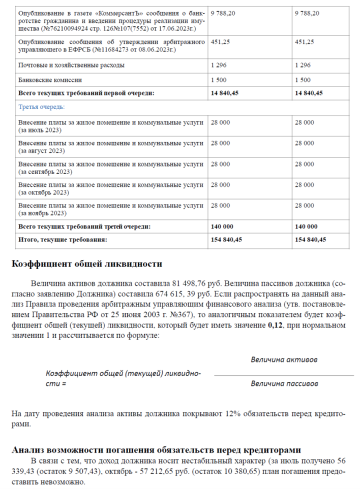 Сравнительный анализ этих сведений и позволяет финансовому управляющему сделать выводы о неплатёжеспособности должника.