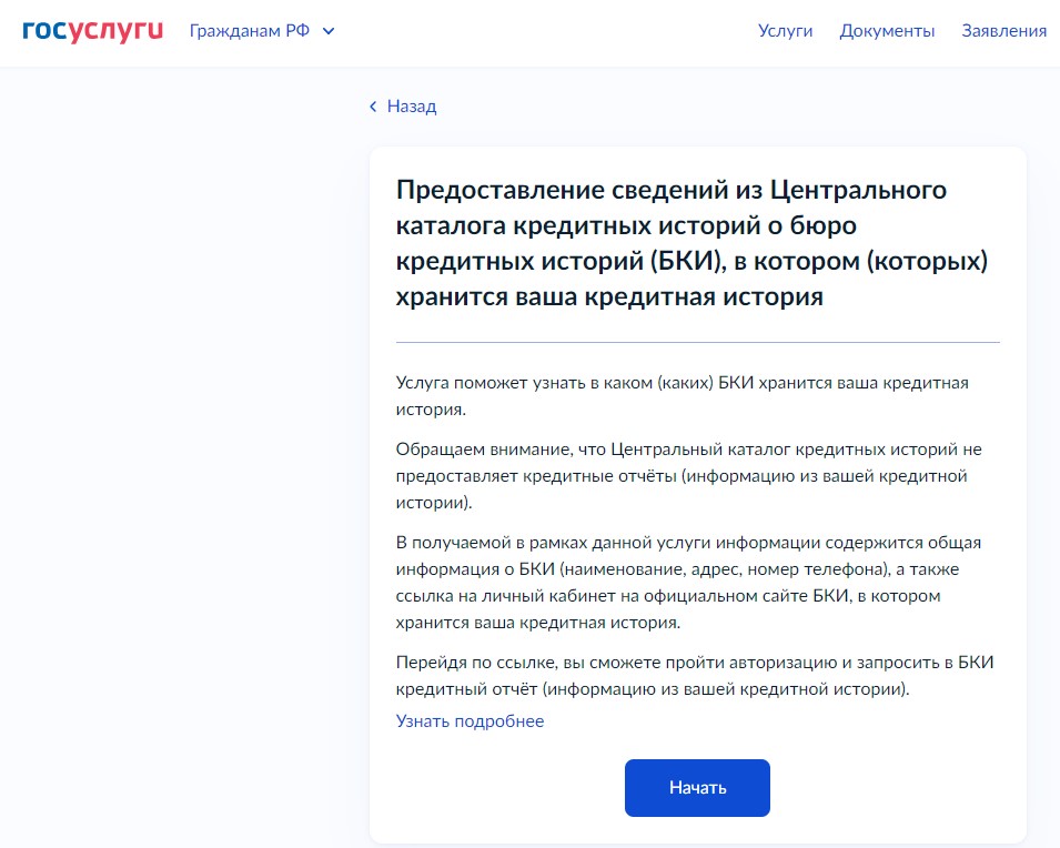 Узнайте, в каких БКИ хранится ваш отчёт. Дело в том, что в России сегодня функционирует 6 бюро, внесённых в государственный реестр (его публикует Центробанк на своём сайте). Банки сотрудничают с одним или несколькими БКИ по собственному выбору. Соответственно история отдельного человека тоже может храниться в одном, двух и более БКИ. Чтобы уточнить, где конкретно, – нужно направить запрос в Центральный каталог (ЦККИ). Удобнее всего сделать это через портал «Госуслуги» при наличии учётной записи (иначе поможет обслуживающий вас банк).