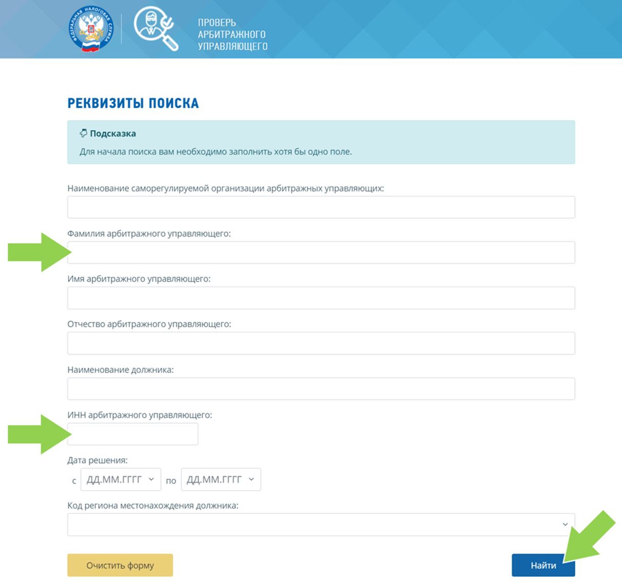 Федеральная налоговая служба предлагает онлайн-сервис для проверки арбитражных управляющих. Он предназначен для того, чтобы информировать интересующихся о нарушениях, допущенных специалистами при ведении дел о банкротстве. Речь идёт не обо всех отклонениях от правил, а о конкретных случаях, когда арбитражный управляющий был признан нарушителем по решению суда.