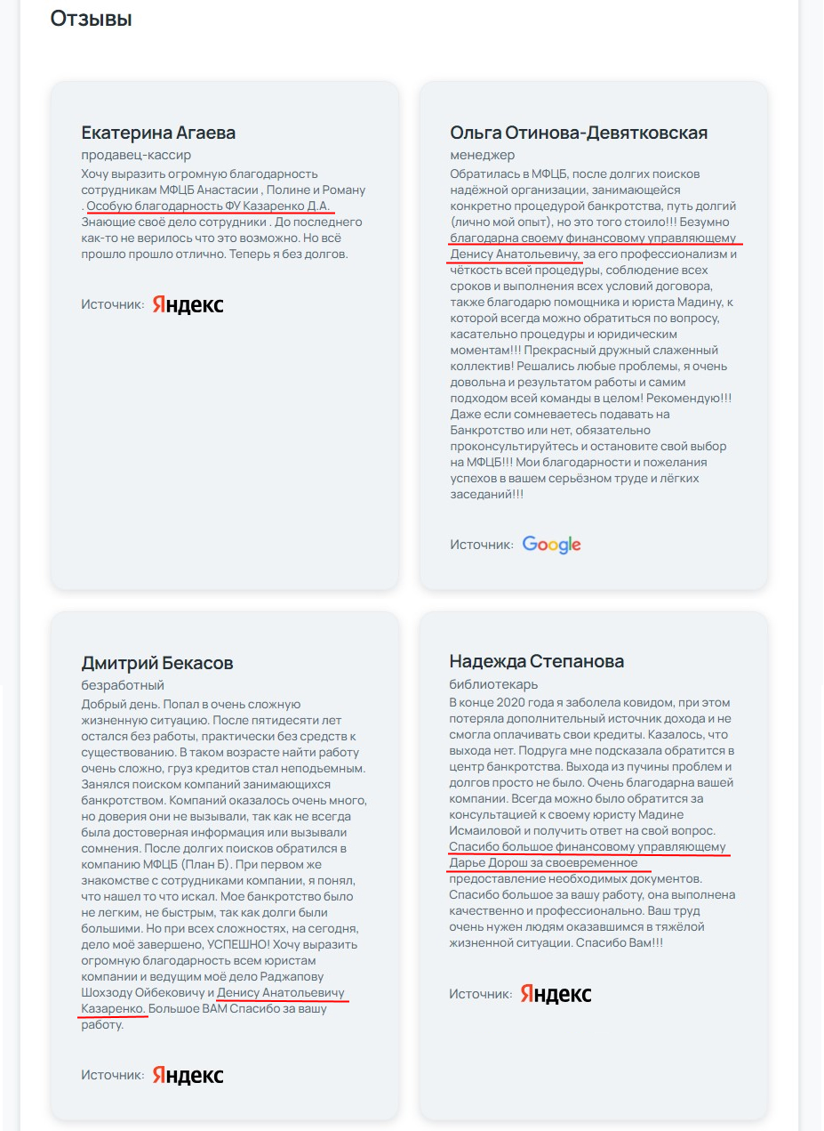 в соцсетях и Телеграм-каналах, посвящённых банкротствам.