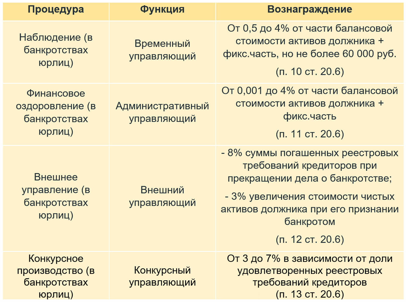 Много это или мало – вопрос дискуссионный. При банкротстве крупных холдингов с большим количеством активов арбитражные управляющие получают солидное вознаграждение. Однако такие процессы тянутся годами и требуют от исполнителя высокой вовлечённости и профессионализма. И это далеко не гарантированный результат, особенно когда несостоятельным признаётся малое предприятие.