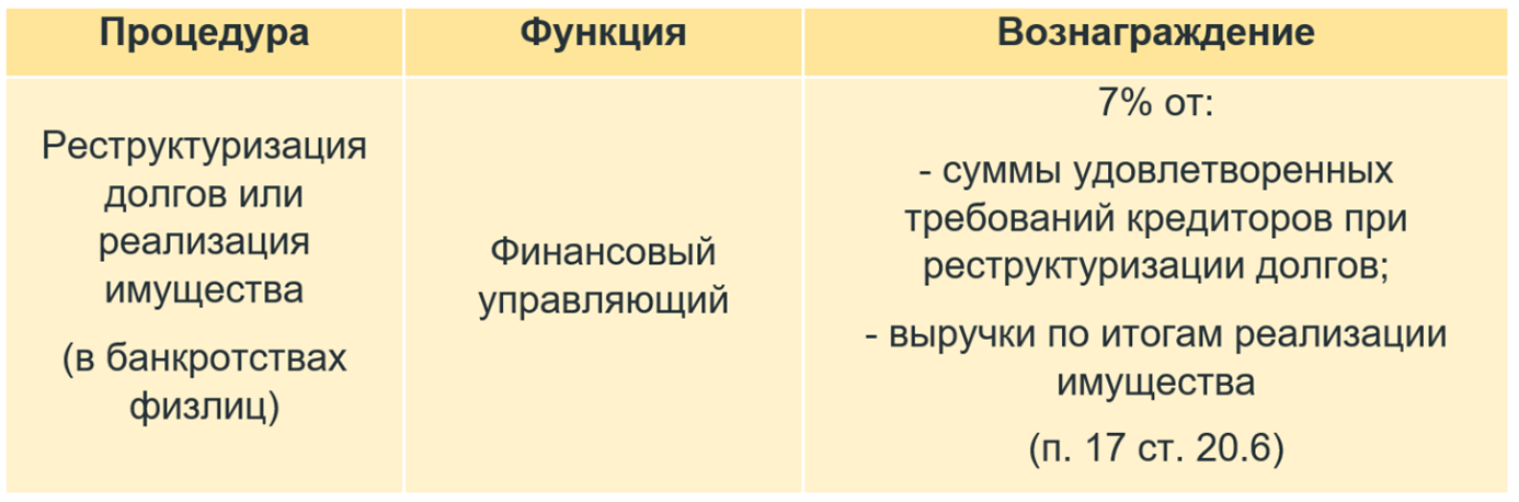 Фиксированная оплата труда исполнителя зависит от того, какую банкротную процедуру он сопровождает: